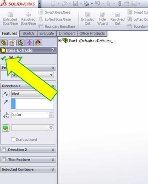 Haga clic en la marca de verificación verde situado en la parte superior de la ventana "Jefe-extruir" situada en el lado izquierdo de la ventana del programa.