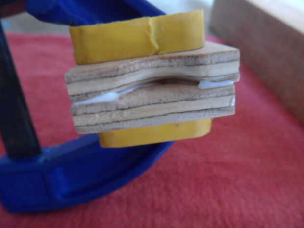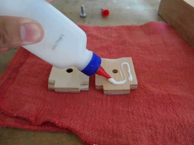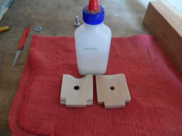 Luego se pegan dos piezas de madera como se muestra en las fotos y dejar secar.