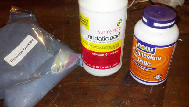 Paso 2: Componentes: grafito, dióxido de titanio, óxido de Mangesium, ácido clorhídrico, cloruro de aluminio y Urea