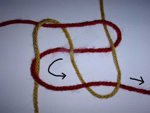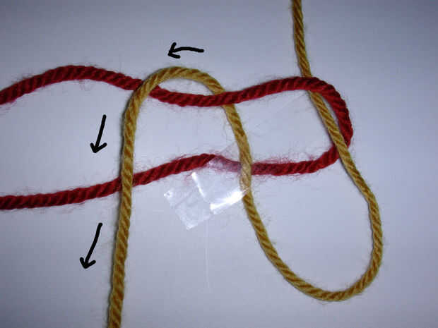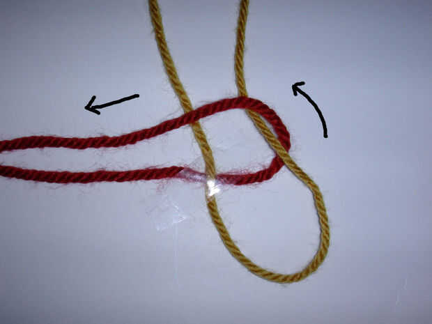 - Siga las flechas en las ilustraciones adjuntas para construir el nudo
