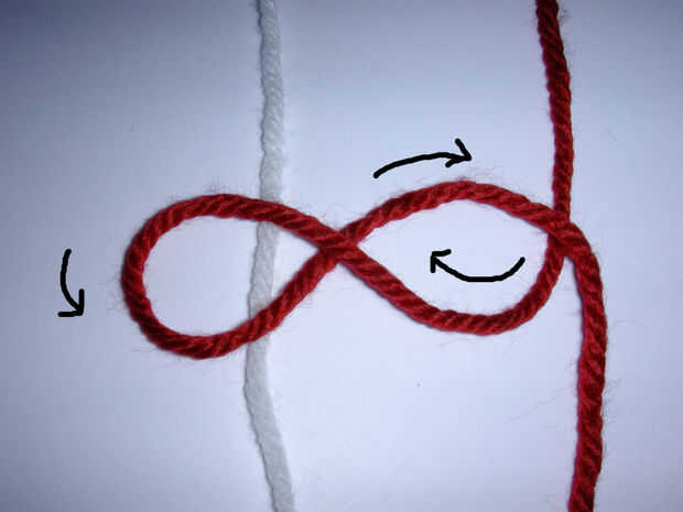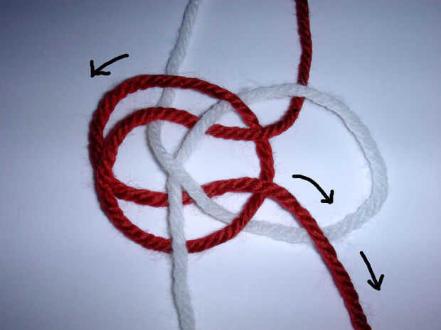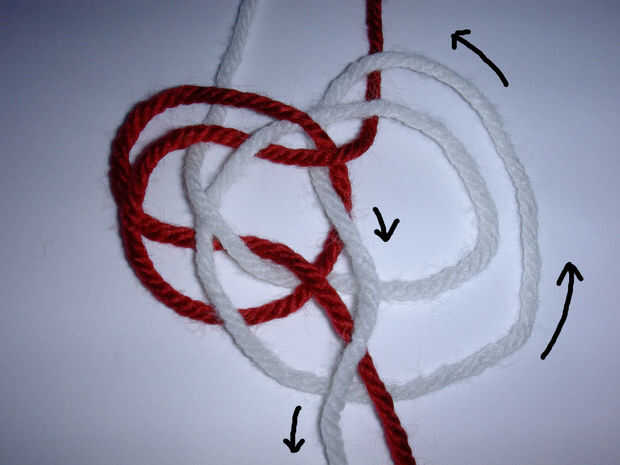 - Siga las flechas en las ilustraciones adjuntas para construir el nudo