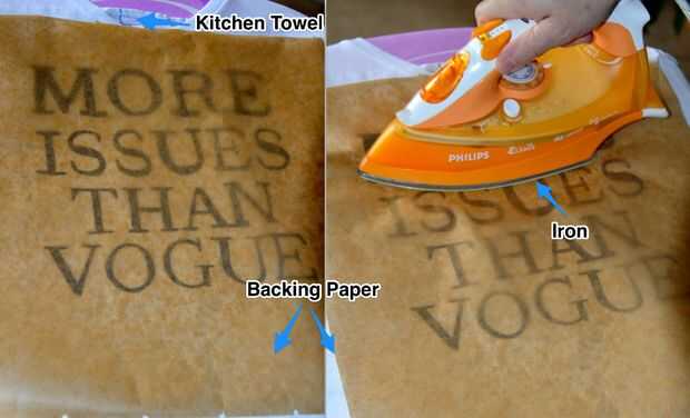 Para el diseño del hierro, usar la configuración de su hierro, que son apropiados para el algodón. En primer lugar, coloque un pedazo de papel para hornear directamente sobre la superficie pintada. Utilice su plancha, circulan por todas las partes del diseño por aproximadamente 5 minutos.