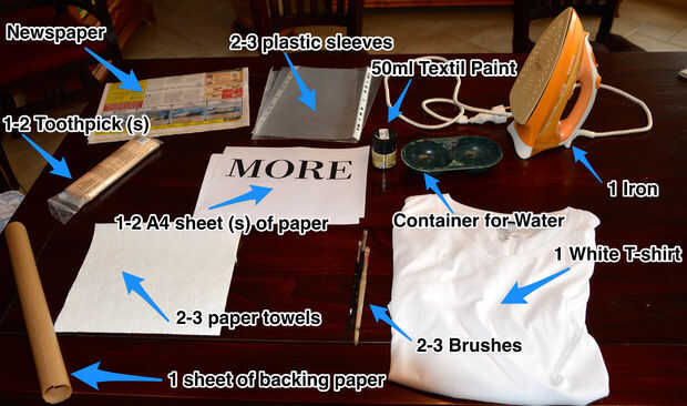 Después de crear un diseño con una de las dos maneras descritas anteriormente, tomar el diseño y deslice dentro de una funda de plástico. Las mangas plásticas evitará que el papel se pegue sobre la camiseta mientras que pintar sobre él.