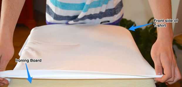Tire la camiseta sobre su tabla de planchar, de manera que la parte trasera de la camiseta está por debajo de la Junta y la parte delantera es en la parte superior. Asegúrese de que la camiseta se estira hacia fuera por lo que hay no hay arrugas. Las arrugas hará pintar la camiseta muy difícil y por lo tanto, son indeseables.