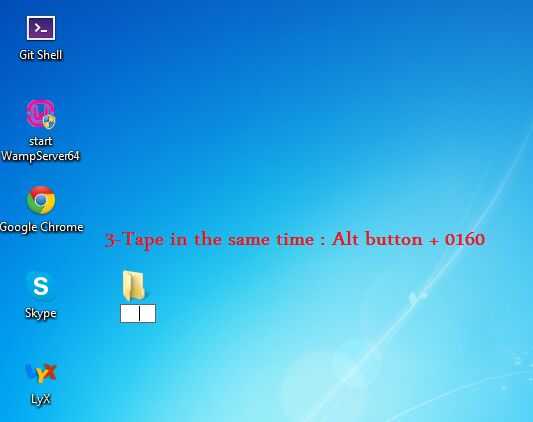 Crear una carpeta sin nombre y sin icono (2 / 3 paso)