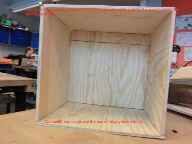 Si tienes los cinco lados, comenzar pegando a ellos usando cualquier pegamento de madera, como el pegamento para madera Frankling Titebond por ejemplo, o una pistola de pegamento. Unte el pegamento uniformemente a lo largo de sólo uno de los dos lados cortos va pegar y tenga cuidado de no poner el pegamento demasiado cerca en el borde, como el pegamento se exuda hacia fuera cuando usted presiona los dos lados juntos. Intentar pegar el núcleo externo primero y luego por último pegar la espalda piezas última.