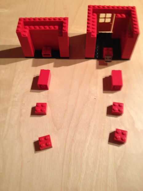 1. pila cinco de 2 x 2 piezas encima de cada lado de la USB (tenía dos 2 x 2 piezas que eran tres altos, pero son difíciles de encontrar, así que esto es una solución fácil)