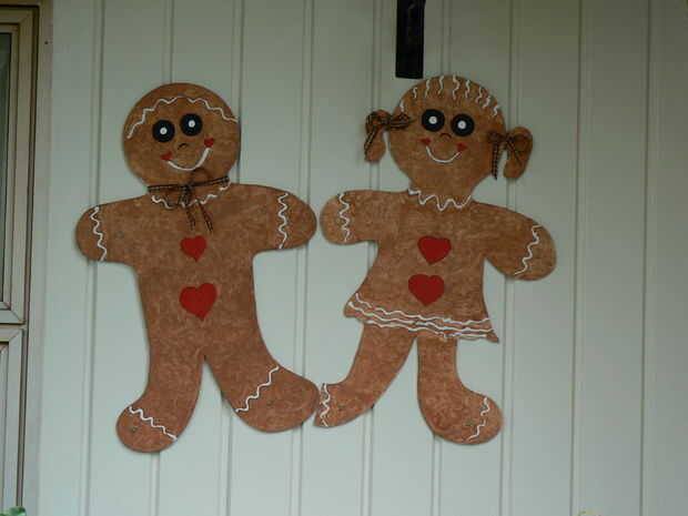 Fred y jengibre fueron cortadas de la placa de cemento, las características fueron hechas con un tubo de adhesivo. Pinté el tablero con un efecto de stipple para darle una galleta.