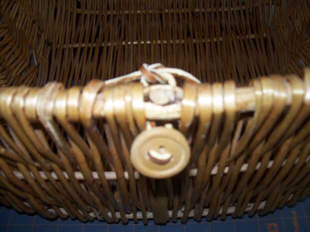 - Atar un botón de madera de cuero en la parte delantera de la cesta ejecutando una 10" longitud de cordón de cuero desde el interior de la canasta, a través del botón de madera de cuero y a través de la cesta. Ate con un nudo.