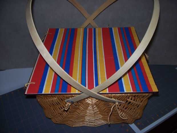 La parte superior de la cesta de picnic puede permanecer plana y sirven como una tabla, o abrir completamente/medio para acceder a su contenido. Mediante el uso de un tablero de juego, una bisagra incorporada existe incluso después de que se cubre con la tela coordinada...