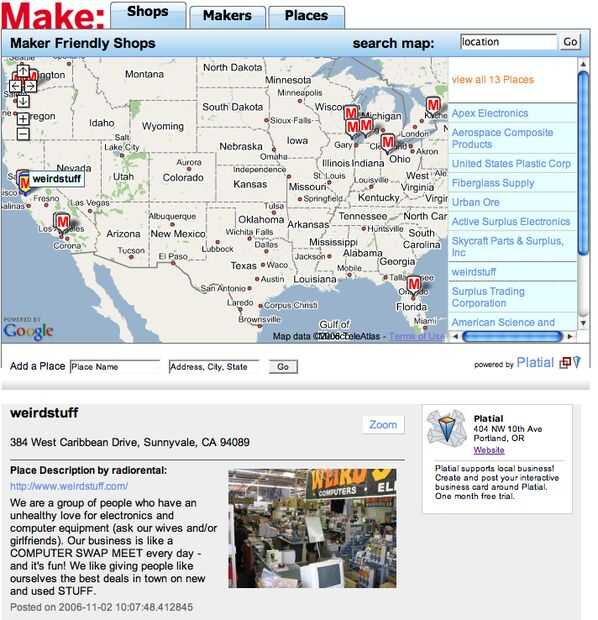 Puede seguir adelante y añadir lugares a estos mapas. Ellos se va vivo en Makezine.com muy pronto.
