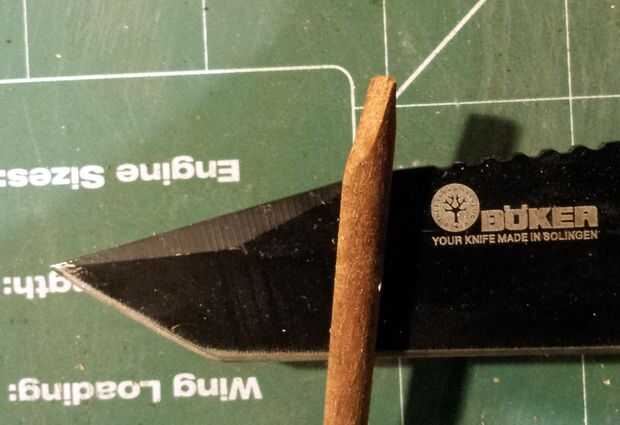 Antes de que usted está muy acabada de quitar material de su punta, dale la vuelta en la parte trasera y hacer un corte corto, directo y firme en un ángulo muy ligero para quitar cualquier redondez (o cuadratura) sobrantes de la forma original de los palillos. Esto debería eliminar solamente muy poco material. Usa un trazo de luz. Siempre puede utilizar trazos más si necesita para llegar hasta el ángulo que se desea. Ver las fotos aquí para la apariencia.