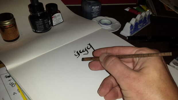 ¡ Felicidades! Usted ha hecho su propia pluma caligráfica digno de iluminar el más fino de manuscritos medievales. Darle una oportunidad. Yo prefiero la tinta líquida de acrílico calidad de archivo, ya que esto funciona muy bien con la porosidad de la madera pluma/pluma. Si utiliza carbono-tipo tinta que su kilometraje puede variar.