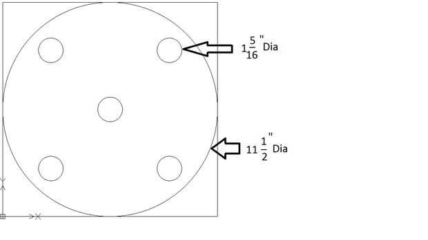 Comencé con un dibujo de lo que quería hacer del CAD que era un diseño simple de un gran círculo de 11.5" de diámetro con círculos más pequeños de 1-5/16" diámetro colocados uniformemente dentro como se muestra en la imagen.