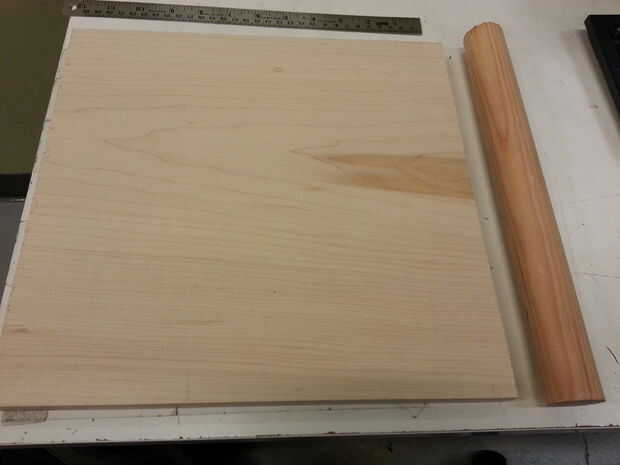Utiliza un láser como estaba fácilmente disponible para mí, pero se puede sustituir este paso por taladrar un agujero con una herramienta de corte circular poco (creo que se llama "zambullida recta router bits") atado a una perforadora de mesa. Pero usted tendrá que coincidir con el diámetro de la pieza redonda de madera que se uso para las piernas.