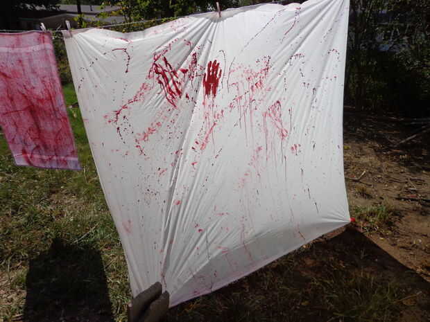 Con la otra mano, agarrar la cortina y remolcadores, creando una impresión de mano embarrada de pánico total...