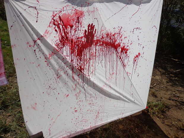 Lanzar su placa de pintura en la cortina, preferiblemente cerca de las huellas.