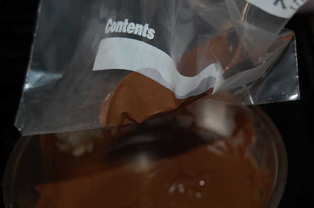 Derretir el chocolate con leche de la misma manera que el chocolate blanco y colocar en una bolsa así.