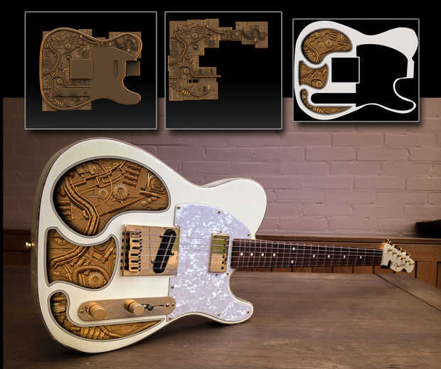 Algunos renders rápidos, lo hice pude pegar en mi guitarra en Photoshop, sólo para ver cómo vería. Realmente ayuda a visualizarlo y a ver si estás en la pista derecha creativa ;-)