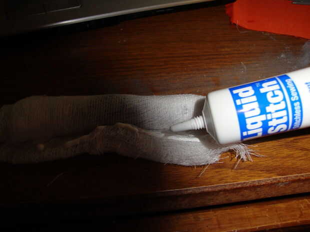 Una vez que tienes el paño de queso y material espumoso ajustado cómo usted quiere líquido coser el extremo en el resto de la tela del queso. Otra vez, me siento pegajoso pegamento estaría bien usar así.