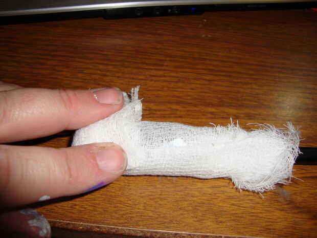 Ahora toma el extremo del paño de queso y doble sobre. Básicamente, usted quiere el extremo despuntado de la flecha, siendo el extremo despuntado de la flecha. Esto añadir más tela a un lado de la flecha, solo haz tu mejor esfuerzo para doblar todo. Pegamento o el líquido esta cosa en su lugar.
