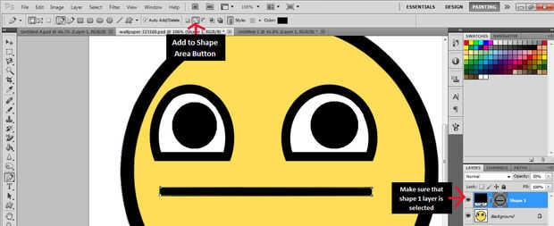 - Seleccione el Agregar botón de área de forma que añadimos la zona negra de la boca a nuestra forma.