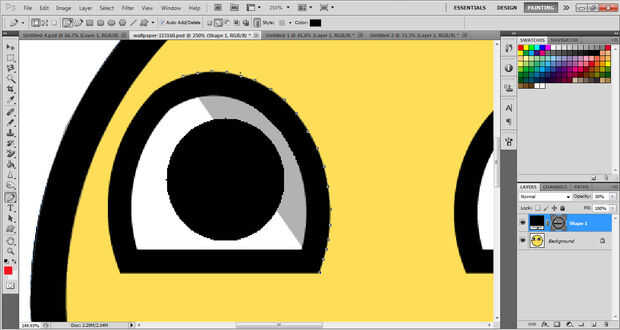 - Con la herramienta pluma aún seleccionado, haga clic en la capa forma 1 para asegurarse de que está activo