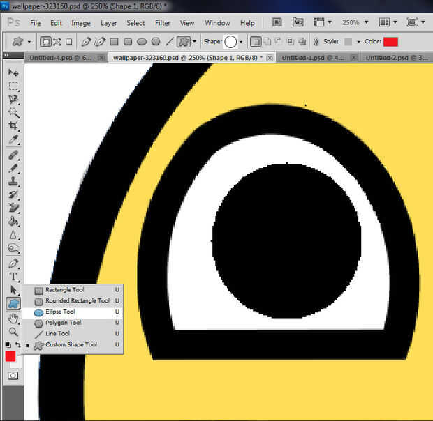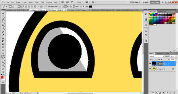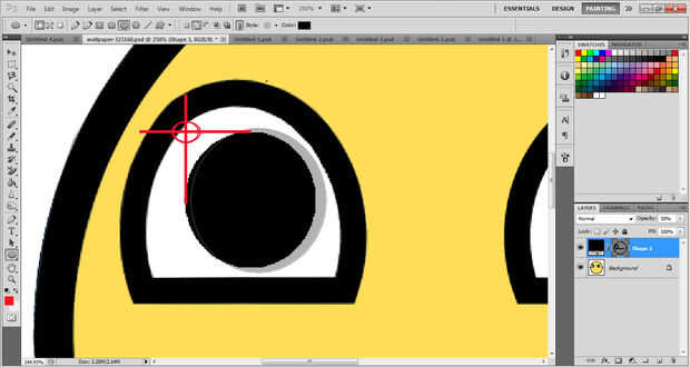 - Para el alumno puede puede utilizar el mismo método hemos estado utilizando o use la herramienta Elipse para poner en una pupila perfectamente redonda que se muestra a continuación.