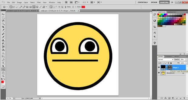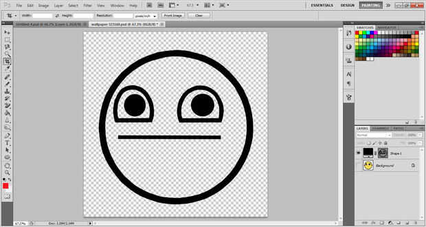 - Seleccione la capa forma 1 y cambiar su opacidad al 100%