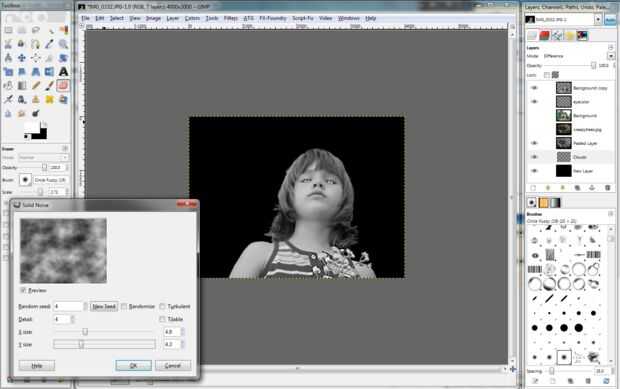 Agregar una nueva capa y moverla a la parte inferior de la ventana de capas. Con la nueva capa seleccionada, utilice la herramienta Cubo de pintura para llenar la capa con negro. A continuación, en el menú superior, seleccione filtros – nubes, nubes de diferencia. Utilizar la configuración que se muestra a continuación y haga clic en Aceptar.