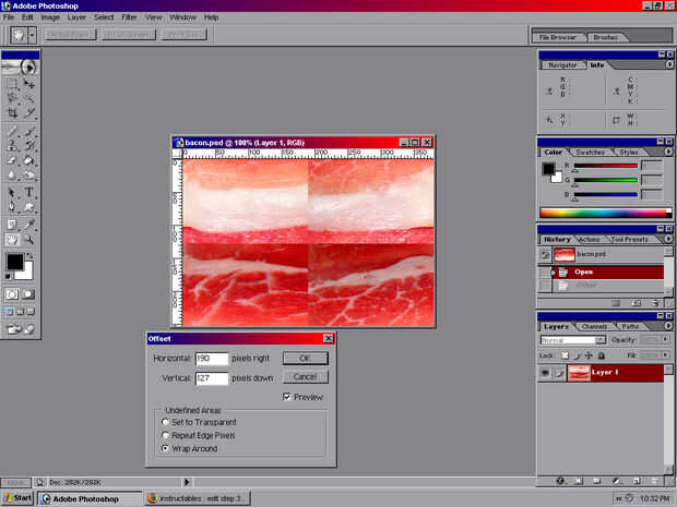 Nuestra imagen de bacon es offset 190 x 127 pixels.
