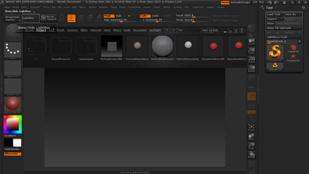 3) a continuación nos vamos al oro grande "S" (cepillo simple). Esto haciendo clic derecho nos dará algunas opciones Ztool o juguetes, para jugar con. Seguir adelante y seleccione la Zsphere.
