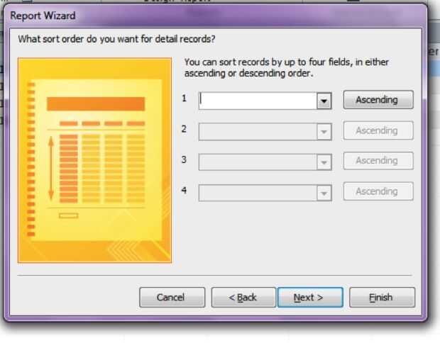 11. para ordenar los registros, seleccione hasta cuatro campos.