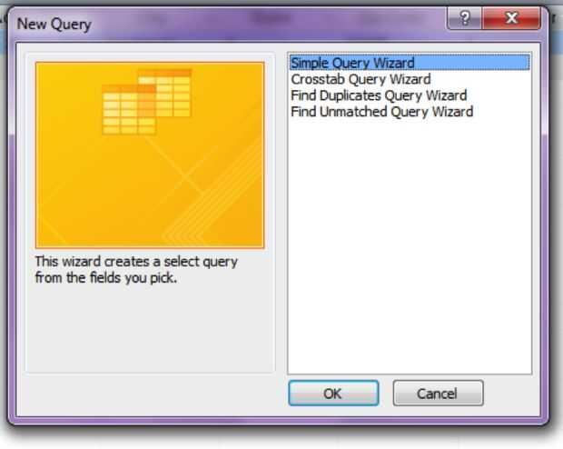 4. Seleccione a "Asistente para consultas sencillas" y haga clic en Aceptar.