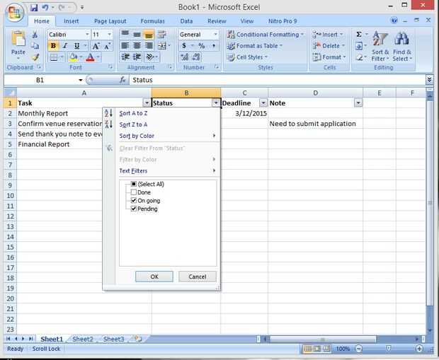Me gusta ver sólo la pendiente y las tareas que va, pero no quiero eliminar las tareas hechas. La opción de filtro me deja hacerlo. Simplemente haga clic en la flecha pequeña al lado de estado, puedo seleccionar o anular la selección de la opción. Aquí, seleccionar sólo adelante y pendiente