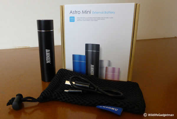 Quería encontrar una solución un poco más ordenada, más flexible, después de un poco de investigación que me decidí a comprar un paquete de baterías recargables de 3000mAh de Anker Astro Mini por 10 libras en ebay. Las luces LED dibujar 70mA aprox. así que, conectado a la batería, debo poder el aparejo de la iluminación de energía continuamente durante 30 horas! El Anker Astro Mini es muy compacto (90mm largo x 23mm de diámetro) y viene con una pequeña bolsa y cable de carga. Mi Panasonic LUMIX TZ40 viene con un cargador USB por lo que en teoría debería ser capaz de recargar la batería de mi cámara también utilizando el Anker Astro debo necesito.