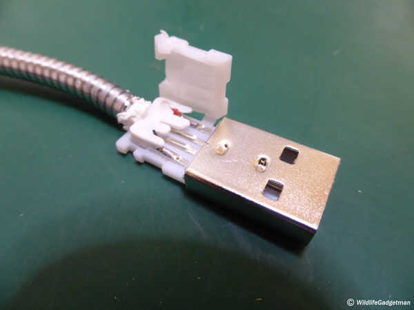 En cuenta que los cables rojo y negro estén conectados a las dos clavijas exteriores del conector USB.