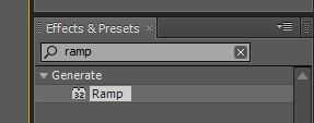 Luego ir al panel de efectos, la búsqueda de tipo para 'rampa' y luego arrastre el efecto hasta el sólido. Esto convierte el sólido en un gradiente con un nuevo panel de efectos en el lado izquierdo.