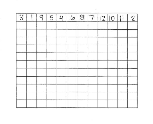 El orden de los números puede ser completamente arbitraria o planificada. Los intervalos entre estos números se convertirá en el número de semitonos entre las notas de la melodía. Con este conocimiento, puede colocar los números en la primera fila de esta matriz a intervalos predeterminados para efecto musical. He puesto los números en la fila superior, como se muestra.