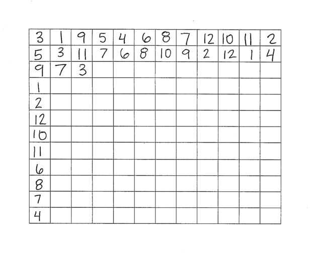 Puede comprobar una vez más su trabajo verificando que cada número entre 1 y 12 aparece una sola vez en cada fila y cada columna.