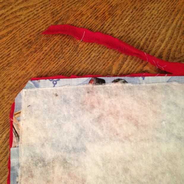 Coser las capas dos (tejido superior y bateo) juntos por cerca de 14". Esto creará la apertura utilizada para girar el tejido hacia fuera.