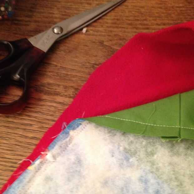 Utilizar tijeras para recortar el bateo cerca de la línea de costura. Recortar las esquinas para retirar el tejido sobrante. De lo contrario, sus esquinas será demasiado voluminosas.
