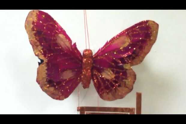 Poner un poco de pegamento en ambos extremos de los resortes (de la mariposa) y pegarlos en la pared donde hiciste las marcas "x". Presione duro hasta que seque.