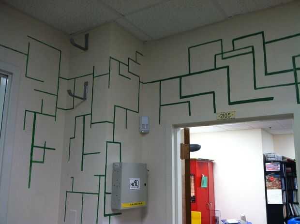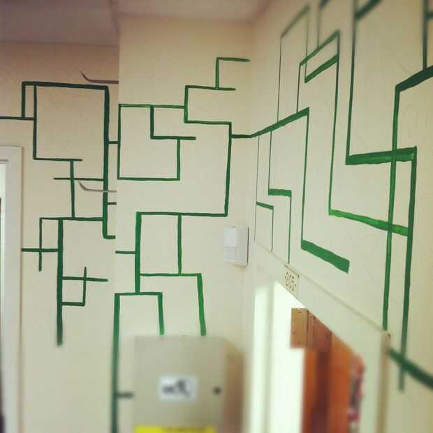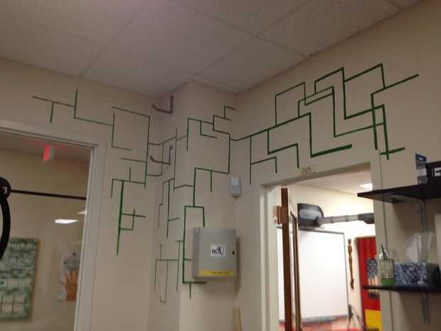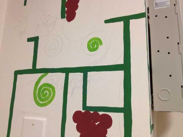 Una vez que has sacado todo con lápiz, estás listo para comenzar a pintar el circuito/enredaderas en la pared.