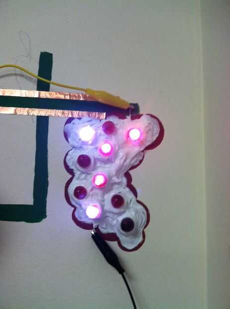 Comenzar por tomar un poco de la pasta en su cepillo y aplique generosamente a una sección abierta de la perfboard o la imagen del racimo de fondo que pintado anteriormente. Tenga cuidado de no obtener demasiada cantidad de la pasta en las uvas ya que sobre todo es opaco y oculta más de la luz que entra a través de las uvas. Mantener la aplicación de pasta hay una gruesa capa que cubre el perfboard y las uvas pintadas circular.