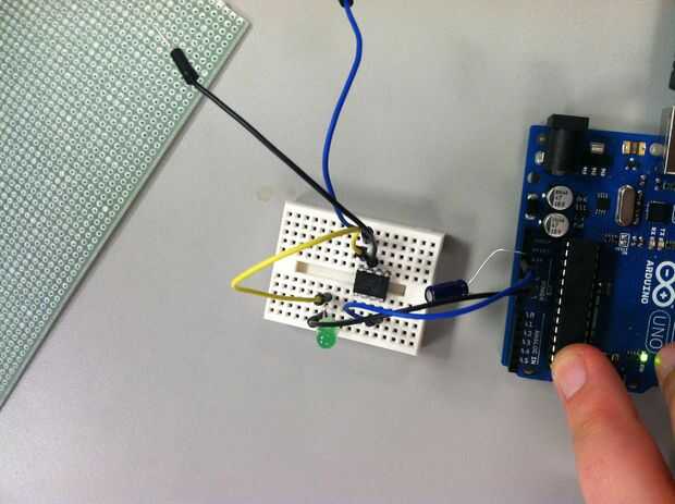 A continuación, cargar el código proporcionado en nuestra página de github para el ATtiny. Una vez el ATtiny está programado con el código táctil, conectamos la salida a un transistor MOSFET para encender los LEDs que están funcionando fuera de poder 19V.