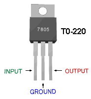 Primero utilizamos un regulador de voltaje de 5V de Radioshack para soltar el 19V del adaptador a 5V para el ATtiny. El micro controlador sólo puede manejar 5.5V máximo así que tenemos que bajar para evitar que vuele el micro controlador. Necesitábamos un disipador para prevenir sobrecalentamiento como la tensión de los reguladores se queman el exceso actual como calor. RadioShack también los tiene.