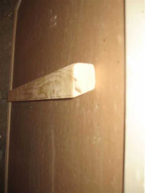 1 2 x 4 se midió y corte que una interferencia apretada encaja en el marco de la puerta (uso la página de la revista brillante como una cuña para un ajuste apretado y para no causar ningún daño a la pintura/acabado de la guarnición