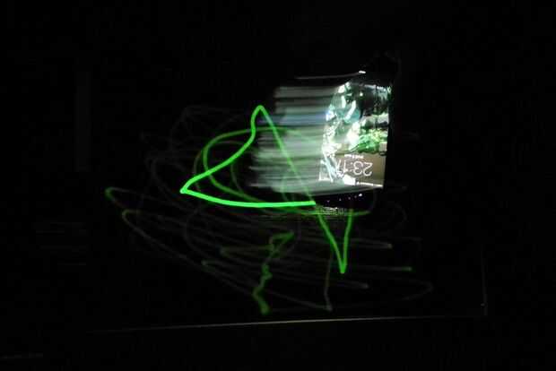 Pintado sobre una superficie pequeña y probé con las luces de nuestro teléfono y un proyector. En el futuro, nos gustaría probar con luces láser.