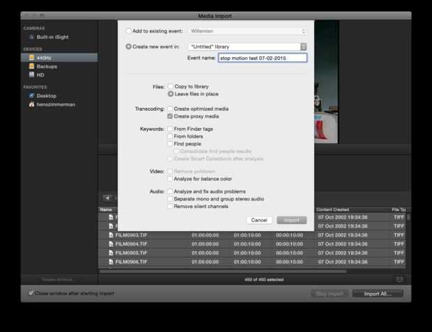 Crear una película de marcos de stop motion en Final Cut Pro X (2 / 7 paso)